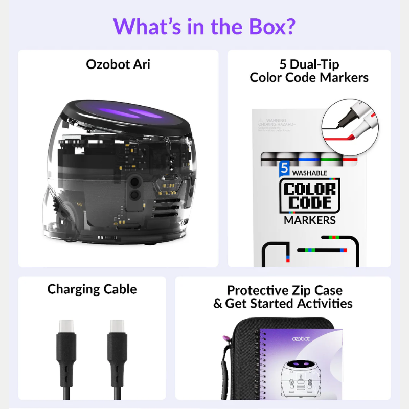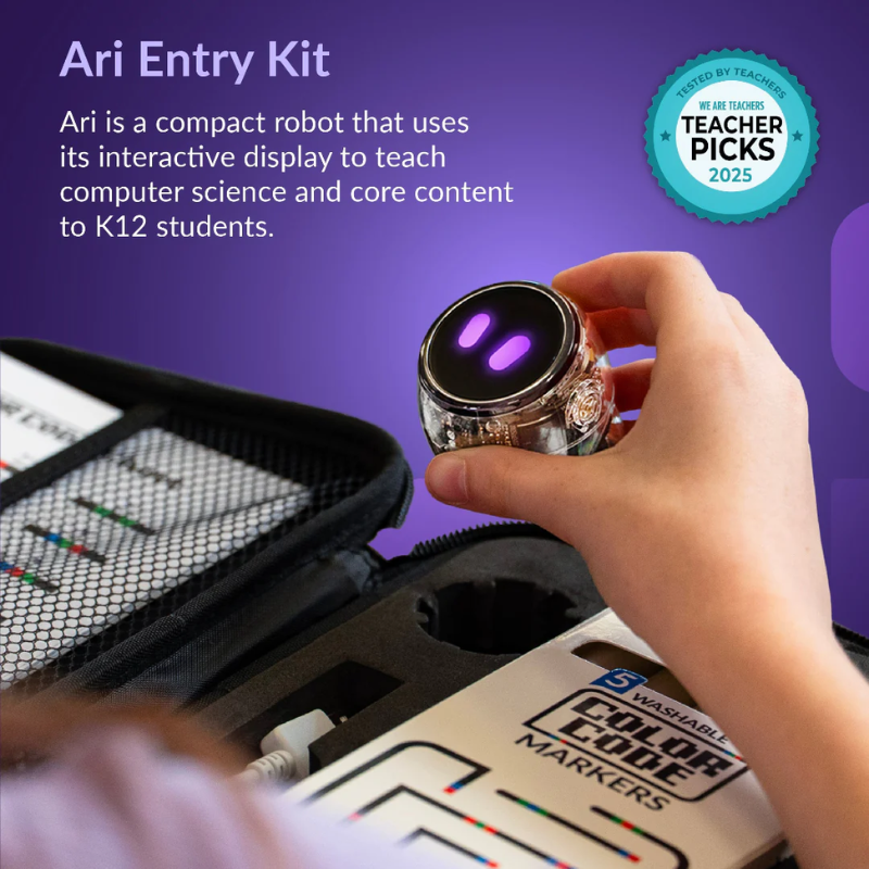 Ari is more than a compact coding robot—it’s a complete learning companion designed to bring computer science, STEM, and core academic content to life for every K–12 classroom. With interactive features that blend technology and hands-on exploration, Ari empowers students to learn by doing while giving teachers a powerful, ready-to-use tool for instruction.