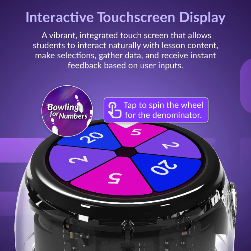 Ari’s vibrant touch display makes lessons engaging and intuitive. Students can make selections, gather data, and receive instant feedback, turning abstract concepts into meaningful, real-time learning.