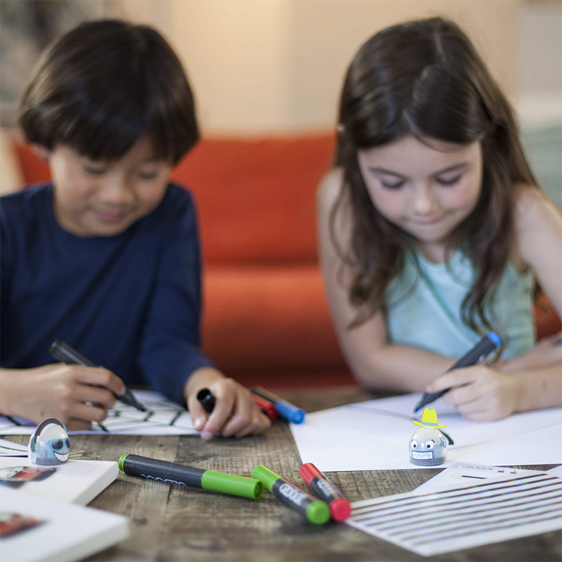 With Ozobot Bit Starter Kit, you’ll start coding with the stroke of a marker. Draw lines and Color Codes, and Bit follows each colorful command. Discover over 20 Color Codes as you complete your Bit Activity Pack. Then, advance with the OzoBlockly code editor on a computer or tablet. Drag and drop blocks to create programs for Bit, then load your code just by holding Bit up to your screen!