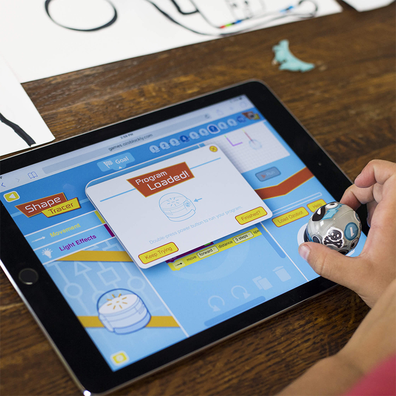 - Visual Programming: OzoBlockly is a drag-and-drop code editor with levels for everyone, even pre-readers. Use OzoBlockly on your computer or tablet, then load code to Bit just by holding the bot to your screen.