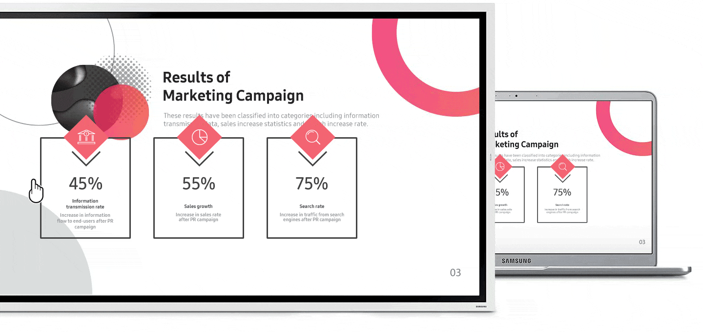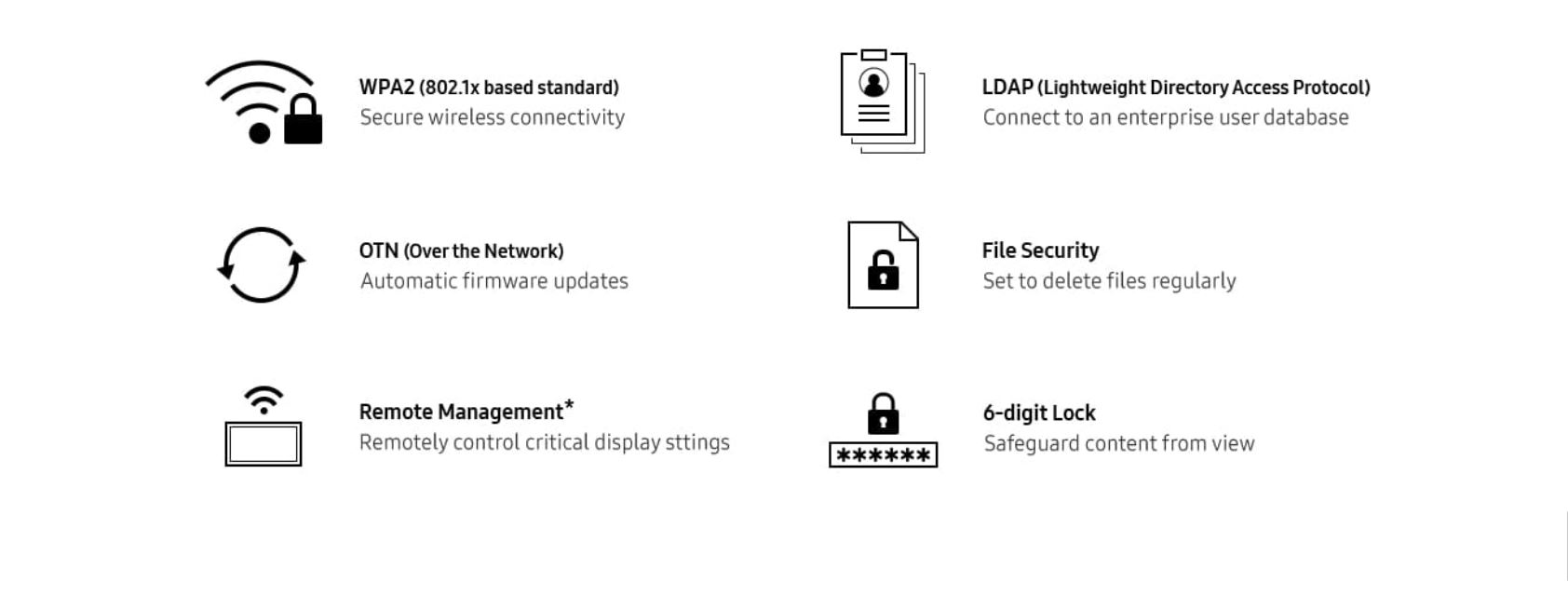 Samsung Flip offers a host of improved capabilities, including secure wireless connection, automatic firmware updates, LDAP synchronization, file security and remote management – ensuring a convenient and productive meeting experience.