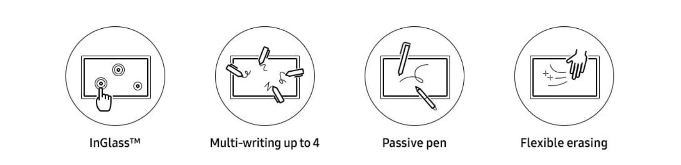 Synchronized screen viewing: The touch out functionality allows users to sync their personal devices with the Samsung Flip, allowing real-time content sharing and control. Any changes made on the Flip display will be mirrored on the connected device, and vice versa, for efficient collaboration.