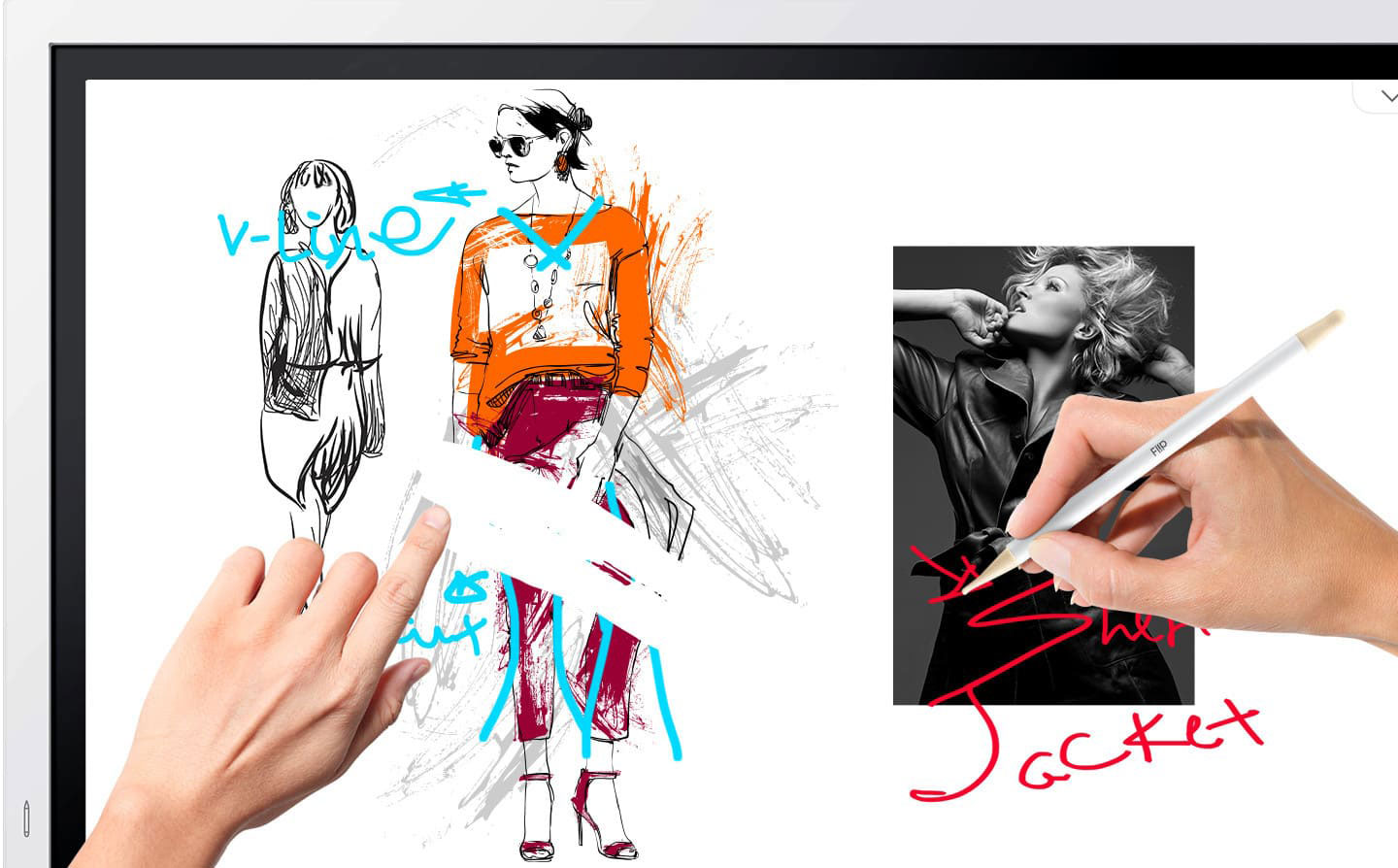 Samsung Flip provides users with a smooth and familiar pen to paper writing experience in a variety of available colors, styles, and widths. Up to 4 people can write simultaneously, using any object as a writing tool. In addition, users can quickly erase the drawings with a finger or palm swipe.