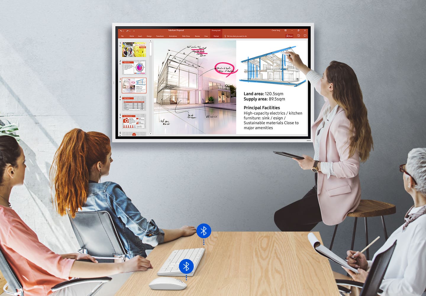The Samsung Flip allows users to connect their PC to the board remotely, meaning any meeting can be started without a PC to avoid delays and ensure efficiency. A Bluetooth keyboard, mouse can also be connected to the Flip, creating a convenient meeting environment.