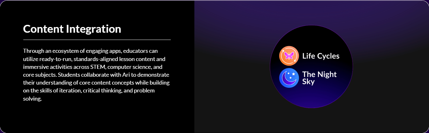 Every feature in Ari is crafted to make instruction easier and learning more impactful. Whether you’re expanding CTE pathways, introducing computer science, or deepening STEM engagement, Ari gives you a turnkey solution that saves prep time and maximizes student outcomes.
