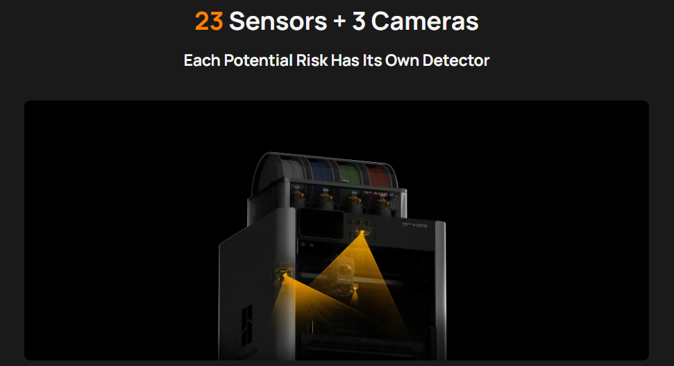 • AI-Powered Vision System: The H2D is equipped with a quad-camera system and 36 sensors, providing micron-level motion accuracy and real-time diagnostics. This system ensures precise alignment and detects potential issues before they affect the print.