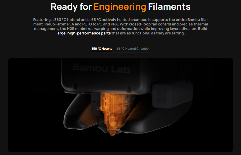 • 350°C Nozzle & 65°C Active Chamber Heating