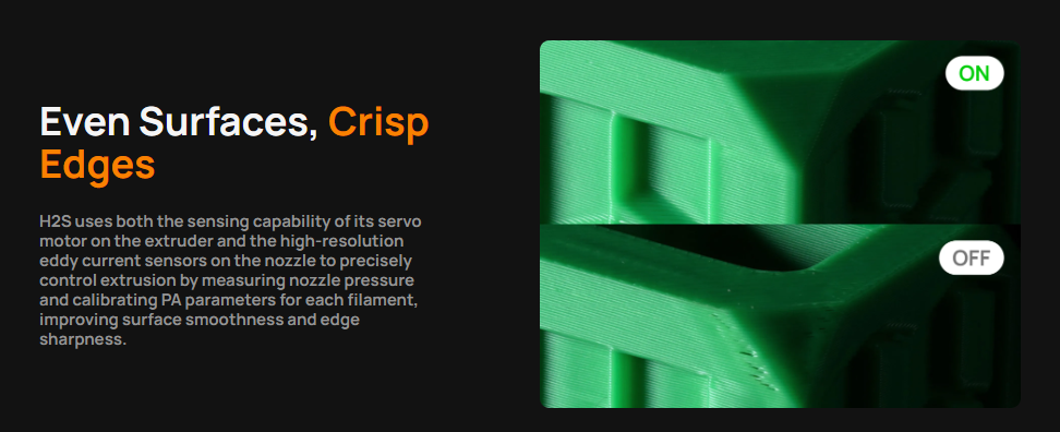 Auto Flow Dynamics Calibration: Uses an eddy current sensor to detect and adjust flow in real time for uniform extrusion on all layers and geometries.