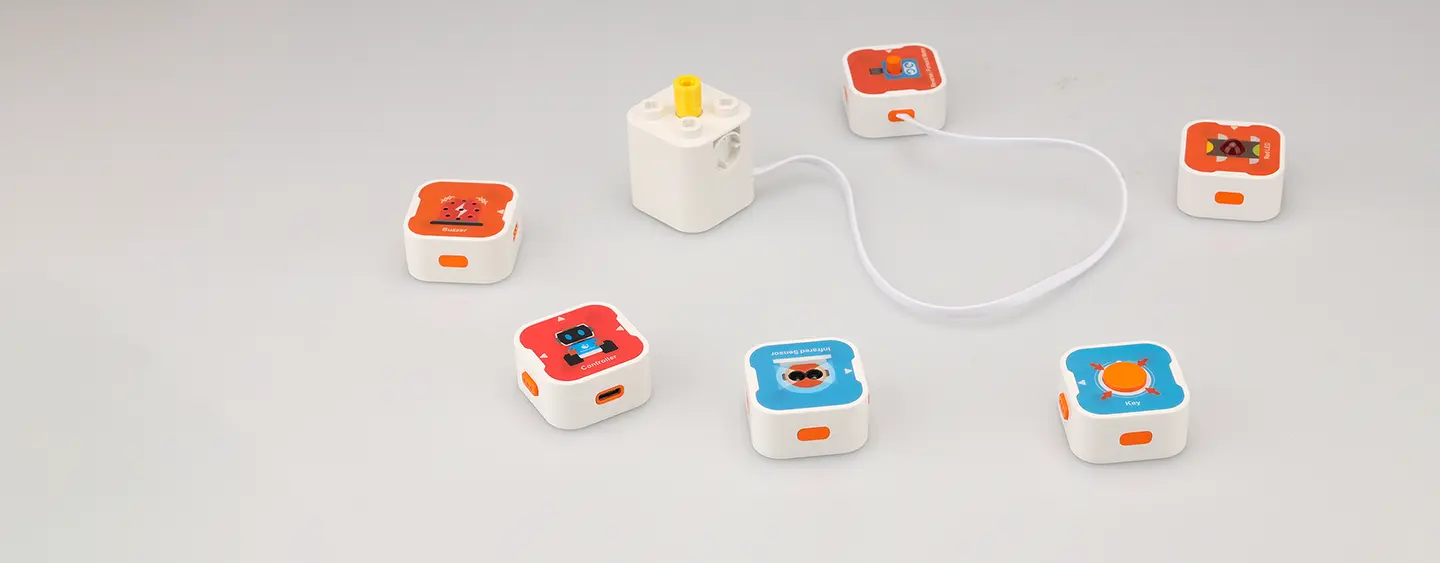 Actuator: Comes with 1 each of the following modules: red light module, buzzer module, forward and reverse intelligent motor module, speed regulation logic intelligent module, electric block machine module, extension line module, and logical modules for “NON”, “OR”, and “AND” functions.