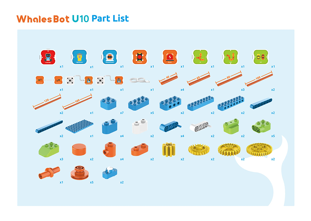 Abundant Parts for Creative Building Diversified structural parts, gears, sensors, and actuators for kids to build interesting models that can execute orders they like.